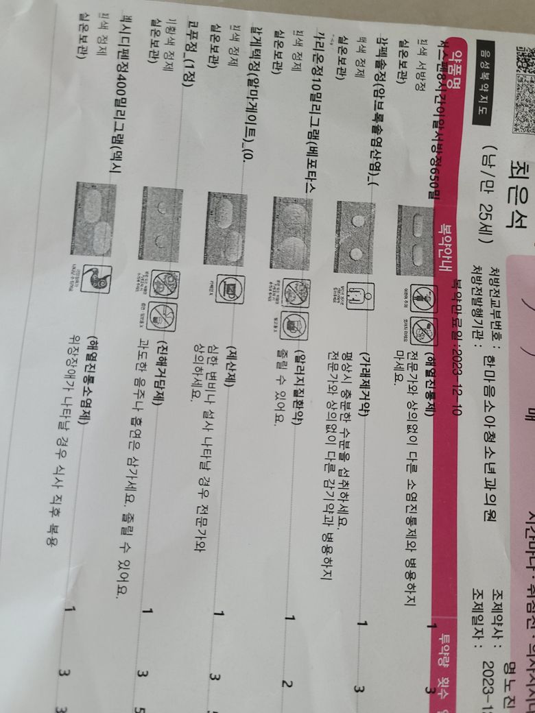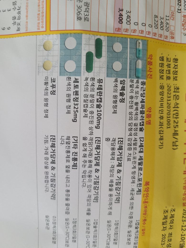 암펙솔정, 코푸정은 기침, 가래약인데 겹치기때문에 1군데서 처방받은 약에서만 드시구요.