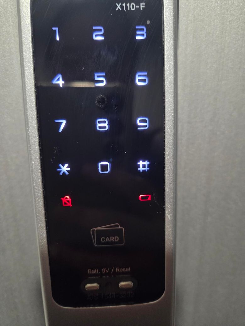혹시 현재 사용중이신 건전지 상태를 확인해보세요 만약 건전지에서 액체같은게 흘렀다면 건전지 제거하시고 도어락안쪽몸체를 드라이기나 선풍기로 충분히 말리시고 새건전지로 교체해 보세요 그리고 건전지는 다이소꺼도 상관없습니다 건전지 교체 하실때는 같은회사 같은 제품으로 전체를 교체해 주셔야 합니다