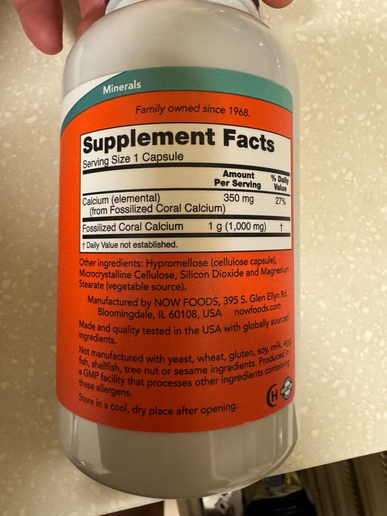 닥터스베스트 마그네슘 2알, 나우푸드 코랄 칼슘 1알, 나우푸드 폴리코사놀 1알