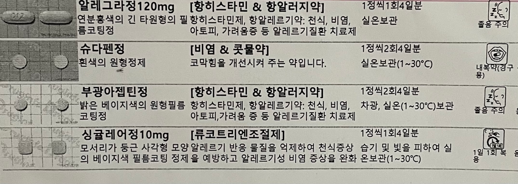 처방받은 약을 먹고 나중에 지르텍을 추가하는게 좋은 방법이구요.