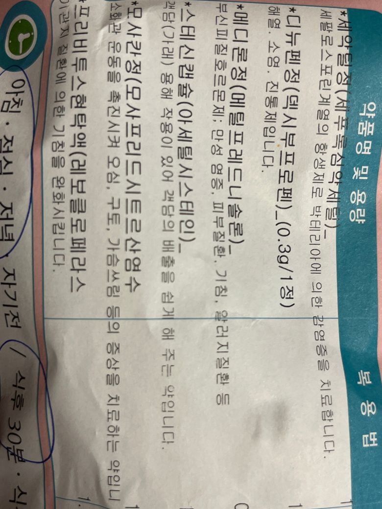 처방된 약은 항생제, 진통소염제, 진해제, 거담제와 스테로이드 제제, 위장 운동 조절제 졸릴 수 있는 항히스타민제는 포함되어 있지 않습니다.