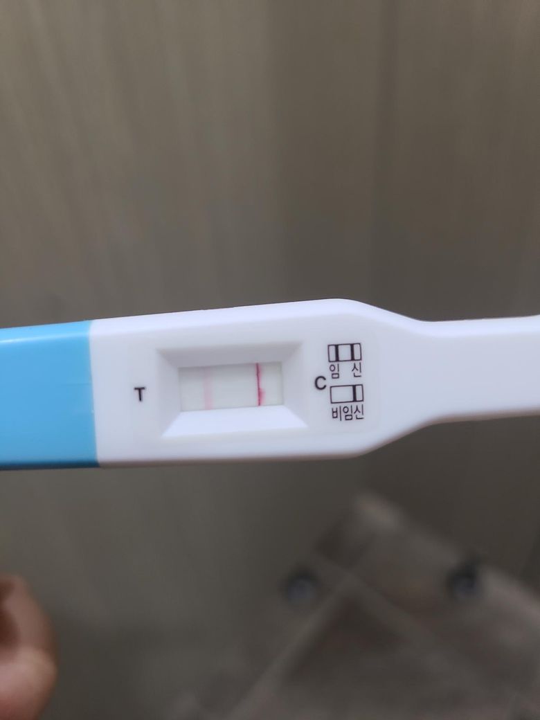 오후에 다시 쓰레기 통에서 주워서 봤는데 흐릿한 두 줄이길래... 여쭈어봅니다 (그리고 휴약기 이틀 뒤에 생리를 하긴 했는데 양도 너무 적어서 불안한 마음에 테스트기를 했어요...!)