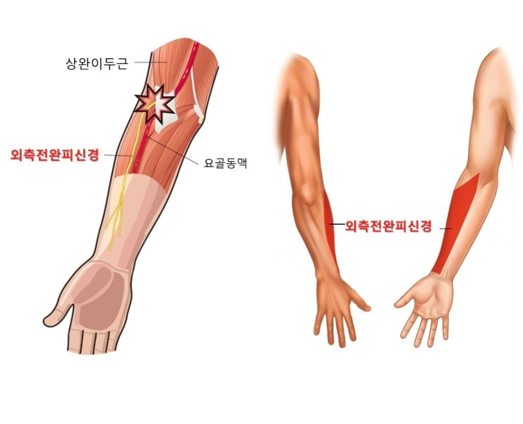 팔씨름을 하고 한 한달동안 엄청난 통증이 있었다가 통증이 한80퍼센트 정도 없어졌습니다 하지만 1년이 지났는데도 사각근 부위에 뻐근한 느낌과 어깨 전면에 따가움 어깨에서의 소리 등 쪽에서도의 소리가 나며 후면 어깨쪽 통증도 있고 뒷짐을 지고 견갑을 후인하면 팔꿈치 바깥쪽에서 뚝 소리가 나면서 자그마한 통증이 있고 팔을 굽힐때마다 최대 수축지점에서 사진에 보이는 별표 모양에서 틱틱거리며 튕기는 느낌이 듭니다