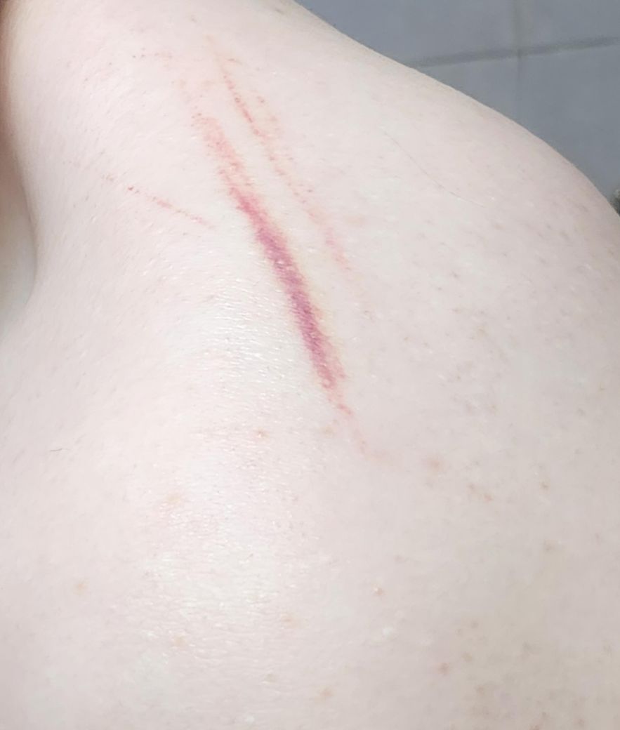 살이 벗겨지거나 쓸린것 처럼 아프진않는데 항상 저 선대로 멍이 들어요. 실제로보면 사진보다 심하게 멍들어 있습니다.