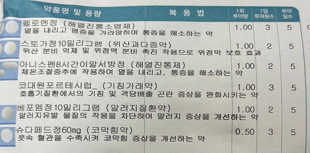 처방약에는 소염진통제인 펠로엔정 포함되어 있으며, 소염진통제를 서로 다른 성분으로 여러 종류 복용하면 안되기 때문에 이부프로펜이나 나프록센 성분을 추가로 복용하시면 안됩니다.