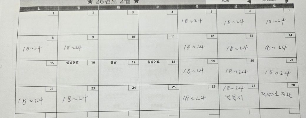 알바 시간표가 2월 한달만 이렇고 평소에는 주말 12.5 시간 만 일합니다 주휴수당 받을 수 있눈 조건일까요? 2/15,16은 제가 한달 전부터 요청해서 빼놓은 시간입니다 사장님께 주휴수당 주셔야 한다구 연락해도 괜찮을까요