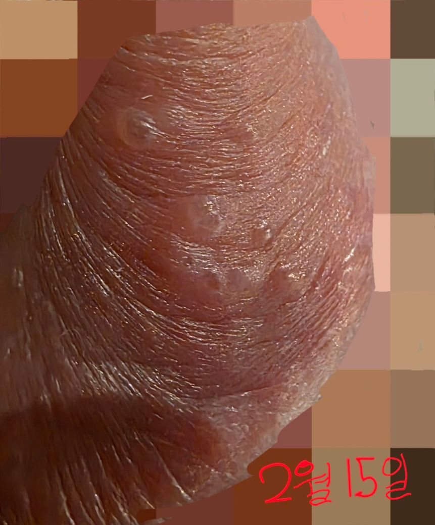 2026년 2월 15일 오전 귀두에 투명한 물집처럼 보이는 것이 올라왔습니다. 두드러기처럼 보이고, 평소에는 큰 통증은 없으며 강하게 눌렀을 때 살짝 따가운 정도입니다.