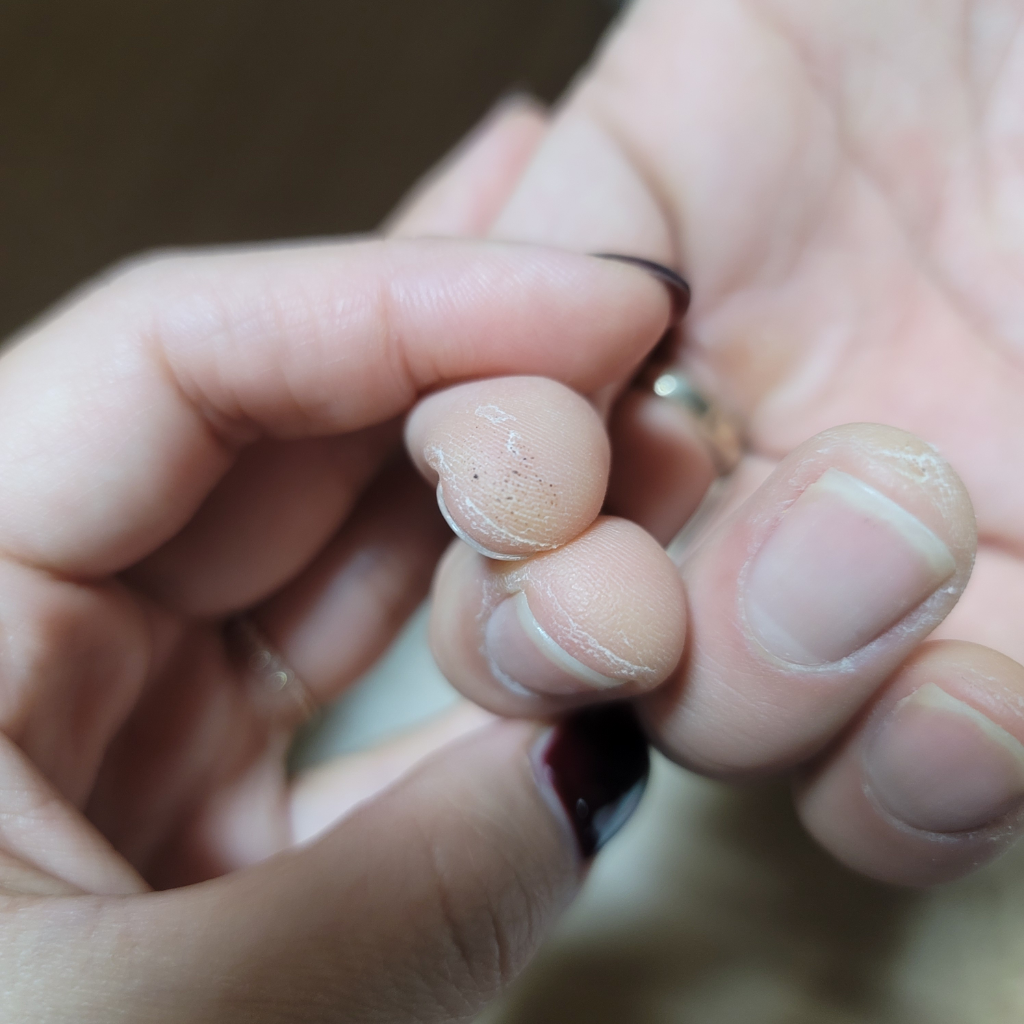 손 끝이 까맣게 점점점 생겨요
