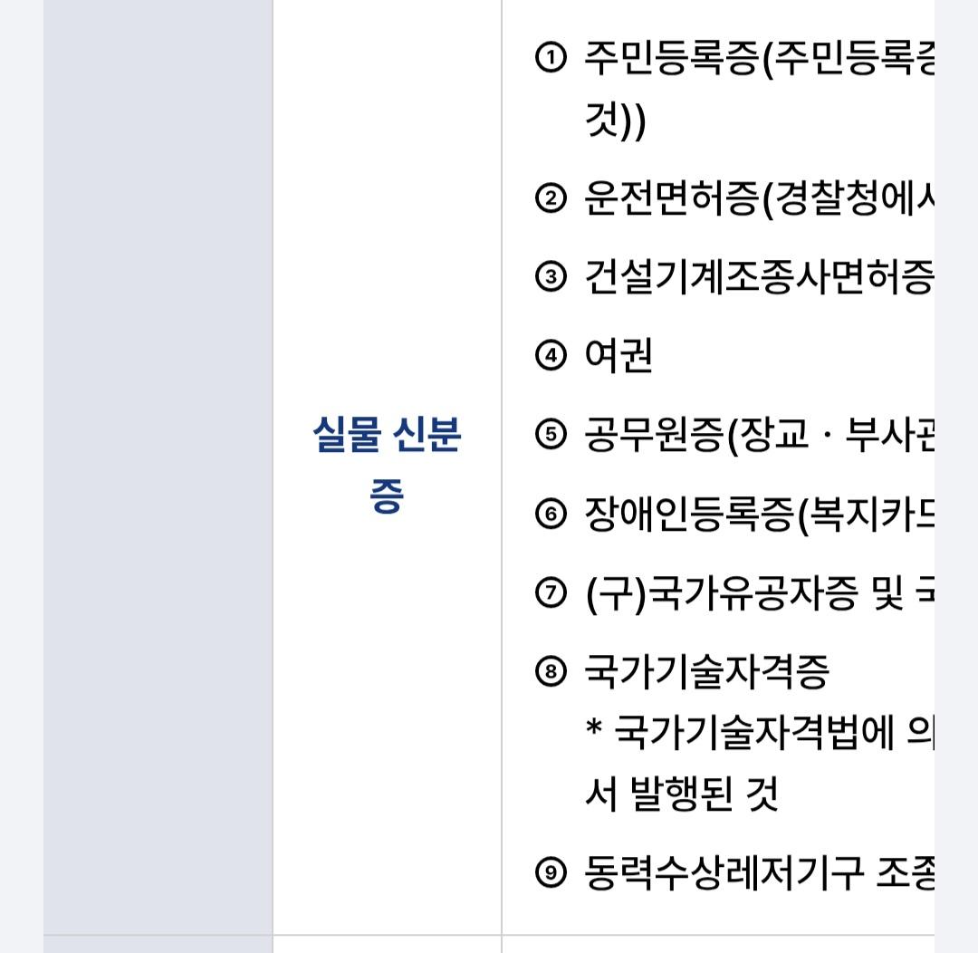 주민증록증, 여권, 운전면허증이 아니더라도 신분증으로 인정되는건 많습니다.