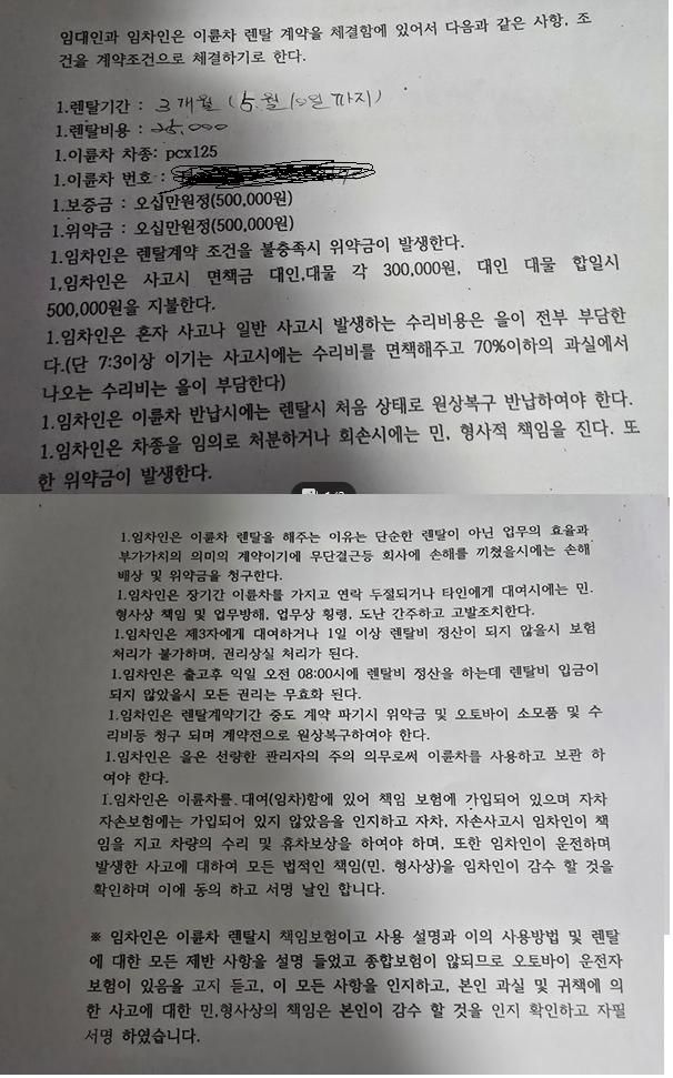 배달대행 , 오토바이리스계약서 위약금