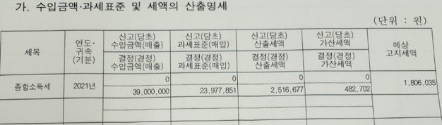 이 경우 관할세무서에서 2021년 귀속분 소득금액을 합산하여 소득세를 부고합니다.