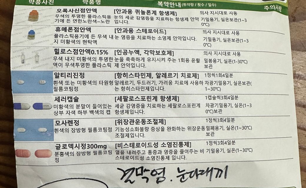 남아있는 약은 끝까지 복용하시고 안약도 일주일은 꾸준히 넣으세요.