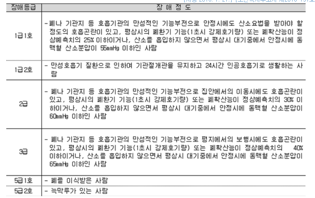 우선 저는 재활의학과여서 호흡기장애 등급판정에 대해서 정확히 알지는 못합니다.