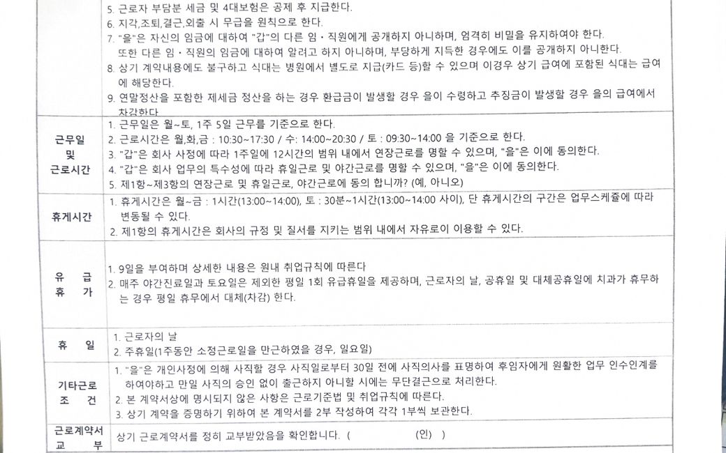 근데 제가 알기론 5인이하여도 근로계약서상 계약한 연차 부여가 있다면 그대로 사용 가능으로 알고 있었는데 자꾸 5인이하는 사업주 재량이다 말만하고 연차사용 없이 육아휴직과 출산휴가만 사용하는걸로 하자고 하더라구요?