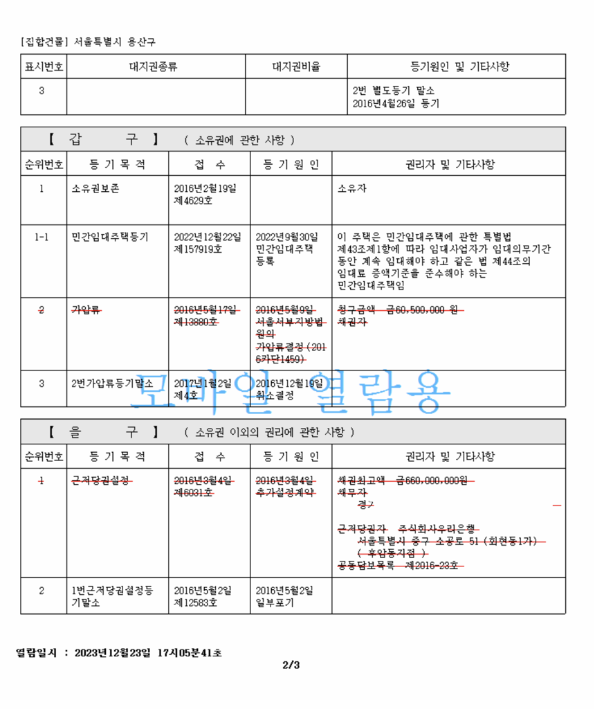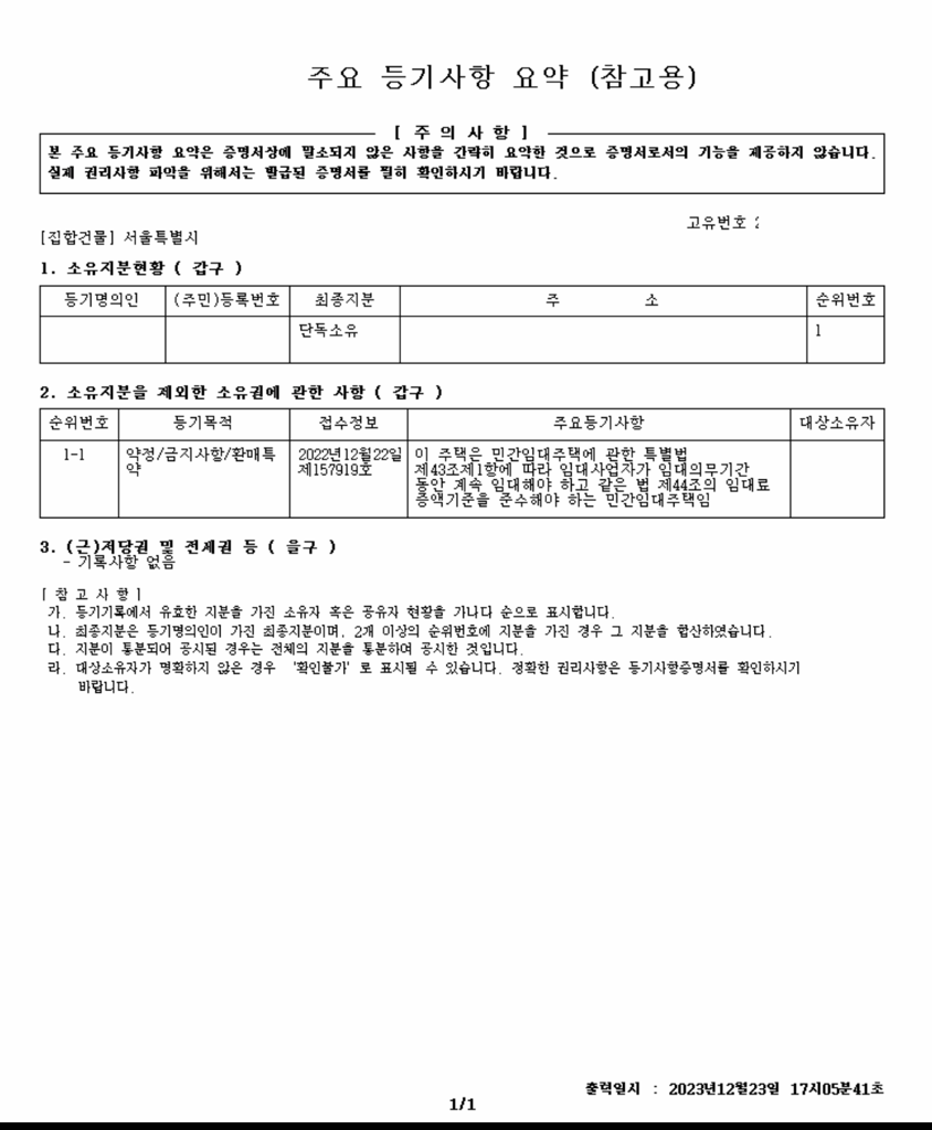 등기부상 확인된 사항만 볼때 권리상 위험한 주택으로 보기는 어렵습니다. 임대사업자로 등록된 주택이며, 선순위 근저당이 없고, 이전 가압류도 말소된 상황이기에 권리관계 자체는 깔끔한 상황으로 보입니다.