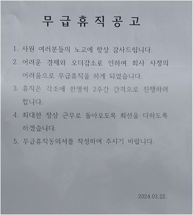 무급휴직 공고가 올라오고 동의서 싸인하라고 주었는데요