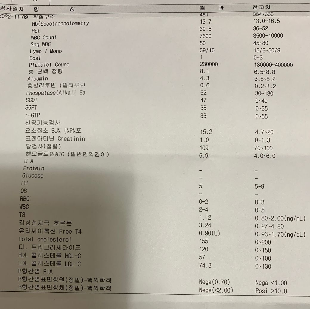 검사 한 병원에서는 제가 바빠서 가족이 대신 피검사 결과를 들으러 갔는데 간수치가 높아졌다는