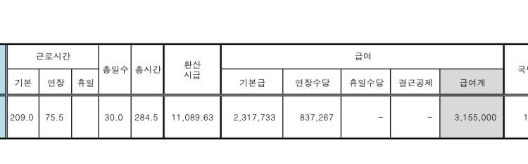 기본급에 209시간이라고 적혀 있는 것으로 보아 주휴수당 약 34.76시간분이 반영되어 있는 것으로 보입니다.