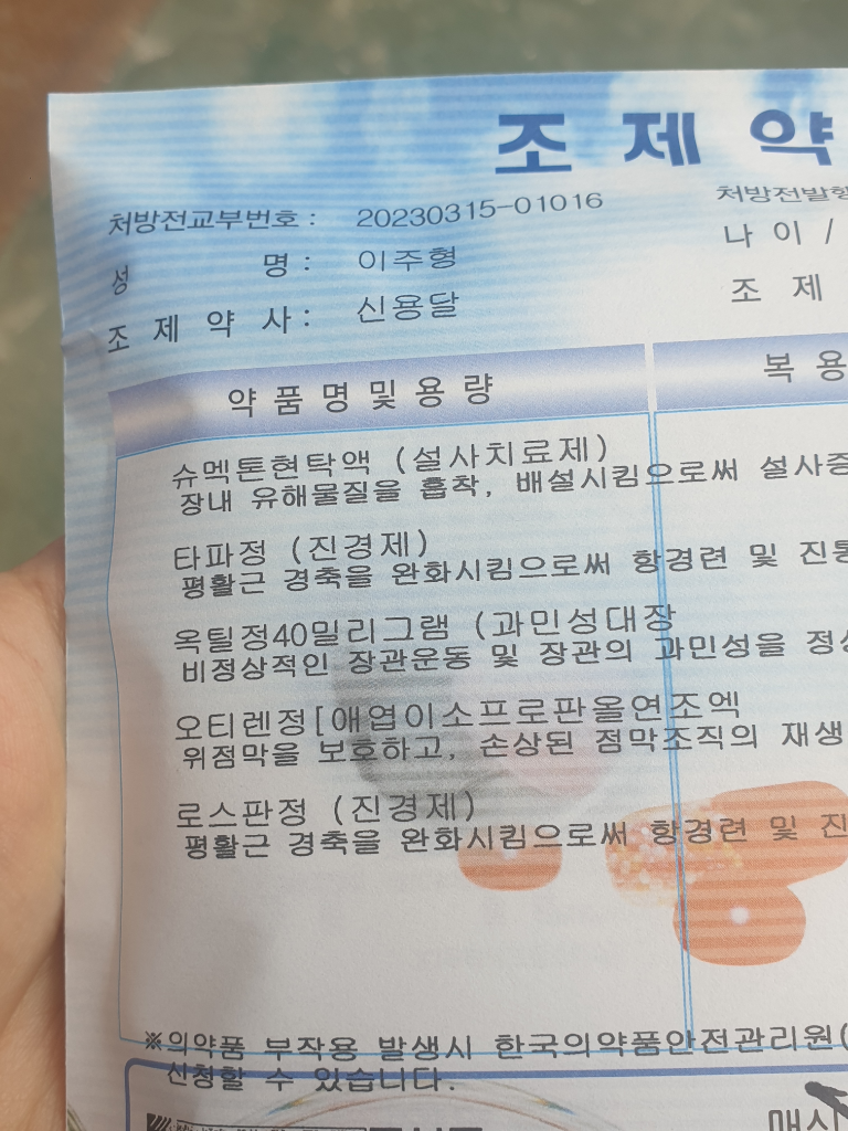 슈멕톤현탁액은 흡착성이 있어서 다른 약이랑 2시간차를 두고 드셔야하구요.