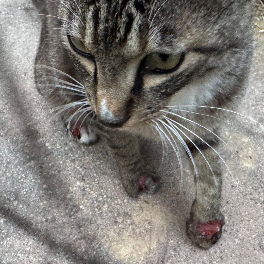 안녕하세요. 박창민 수의사입니다. 고양이의 발 상처는 감염 위험이 높은 심각한 외상으로 항생제만으로는 부족하며, 드레싱과 괴사 조직 제거 등 전문 치료가 필요합니다. 동물병원 내원이 어려울 경우 근처 동물보호단체나 지자체 센터 등에 도움을 요청하는 것이 가장 현실적인 해결책으로 보입니다. 감사합니다.