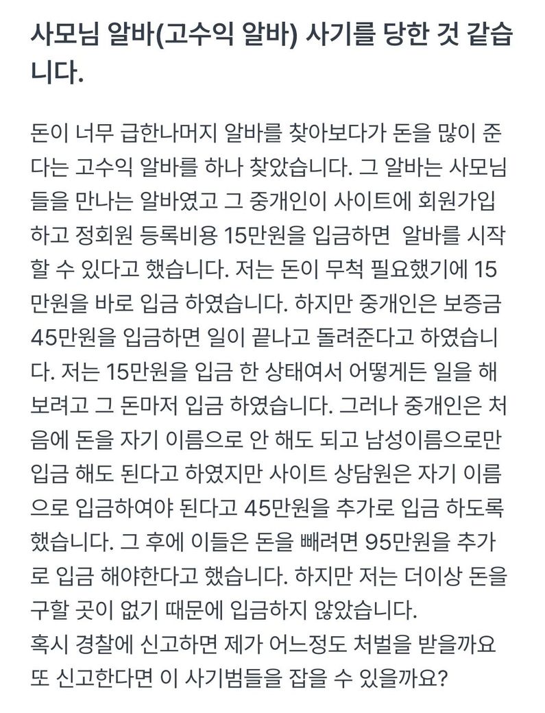 고수익 알바 매칭 사기가 근절되길 바라며