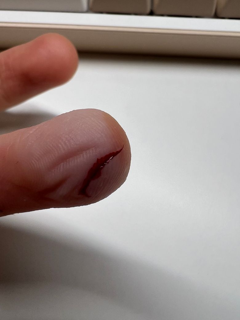 일단은 피가계속날시 물에 손이 닿거나 자꾸사용하면 상처가 벌어져서 낫지않습니다 일단 병원가셔서 소독을하시고 상처가 아물때까지 사용하시면 안됩니다