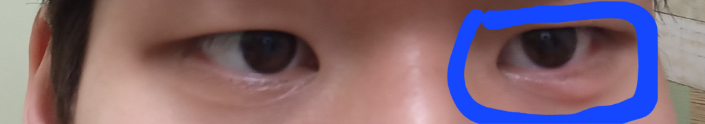 증상 예시로 눈 부분 사진처럼 정상 부분인 왼쪽 눈과 반대로 오른 쪽 눈은 눈 및 살 부분이 부어오른 상태입니다.
