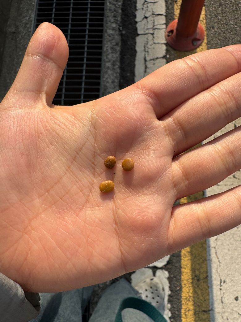 아스팔트랑 흙같은데 뿌려져있는데 유박비료인가요?? 강아지가 먹은 거 같은데 납작한게 무슨 씨처럼 생겼어요…그리고 딱딱해요