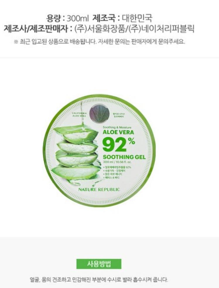 1. 네이처 리퍼블릭 알로에 베라 92% 수딩 젤