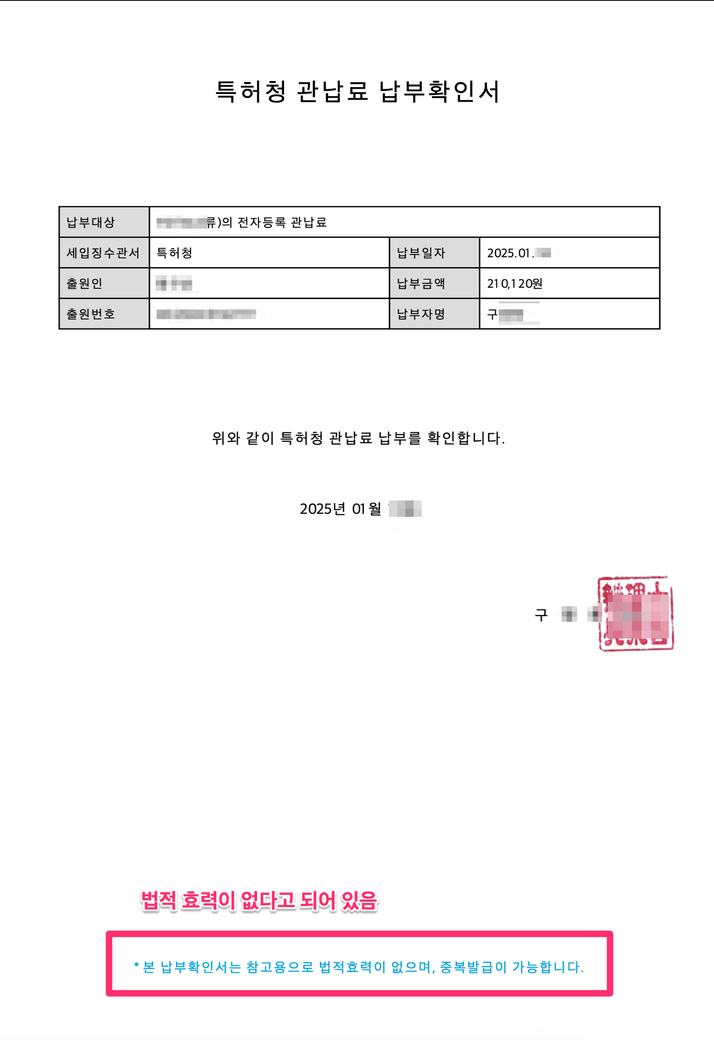 특허청에 직접 결제한 내역도 없고