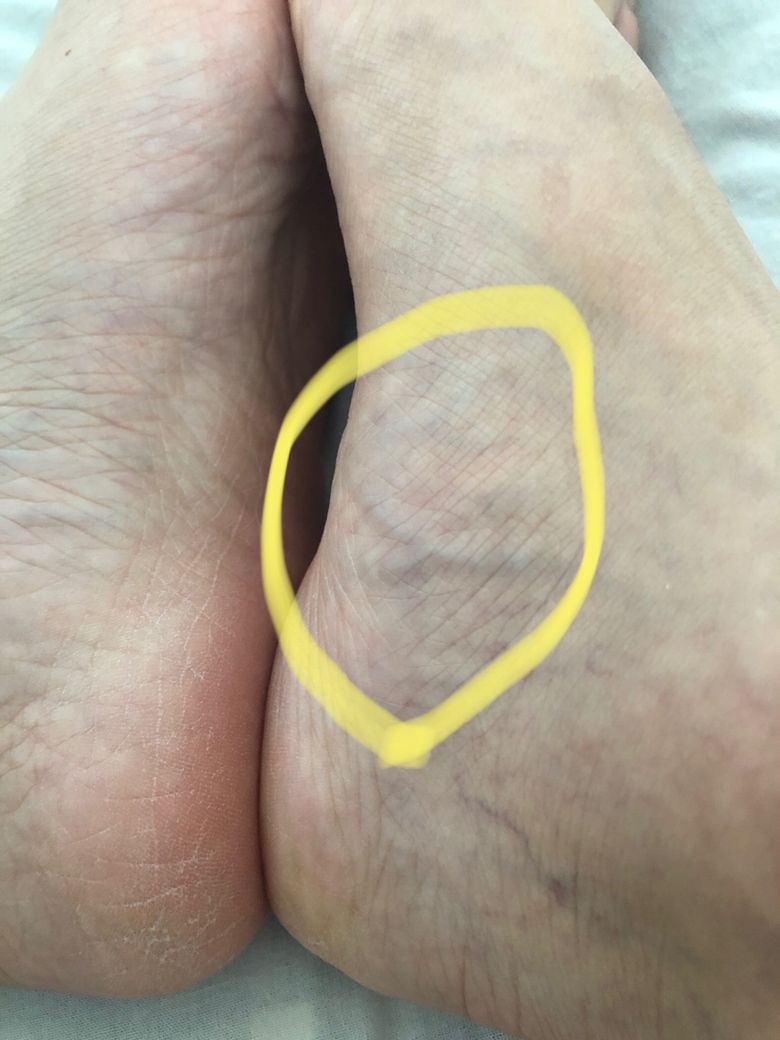 계단 못보고 넘어졌는데 처음부터 멍은 없었고, 통증과 붓기만 있었습니다. 다른 곳은 괜찮고 오른 발 저 노란동그라미 부분만 부었었는데 2주 지난 지금도 약간 붓기 남은느낌이네요