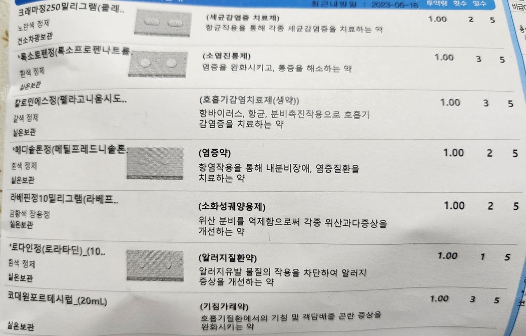 처방받은 약을 복용하고나서 열이 올라온다면 타이레놀을 1회 1~2정 추가복용가능합니다.