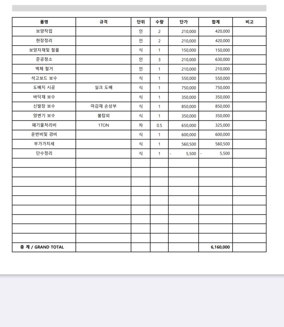 일반적으로 쓰는 자재들인데 600만원을 청구하시네요...
