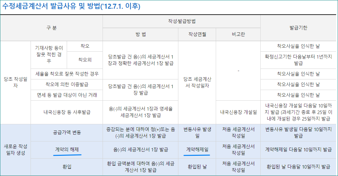 - 아래 수정전자세금계산서 발급사유 및 방법 참고하시기 바랍니다.