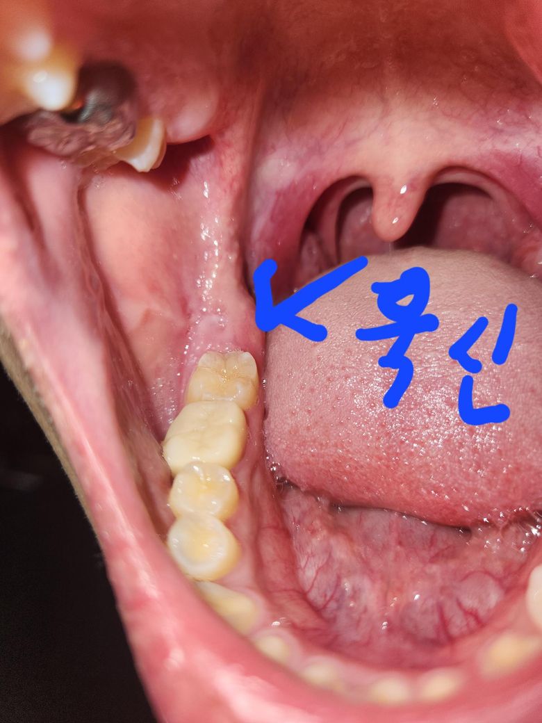 한쪽 어금니 뒤에 잇몸은 씹을 때 욱신거리고 다른 한쪽은 잇몸 살이 약간 갈라졌습니다.