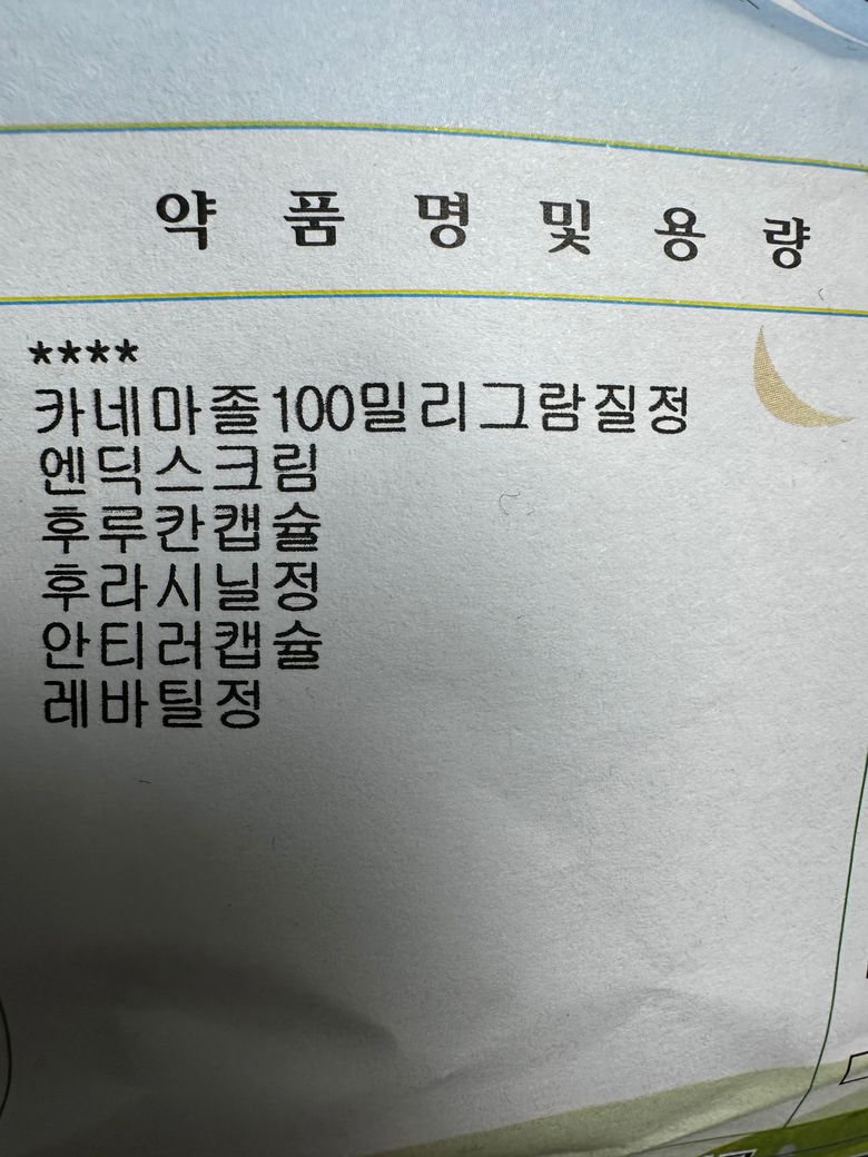 -질염 약은 후루칸캡슐(플루코나졸. 항진균제), 후라시닐정(메트로니다졸. 항원충제), 안티러캡슐(세파클러수화물. 항생제), 레바틸정(레바미피드. 위점막보호제) 성분입니다.