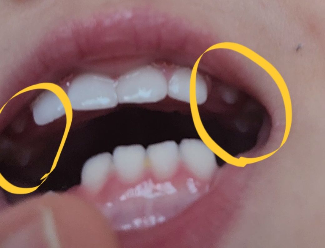 네 현제 유치가 나오고 있는 것으로 보입니다. 정상적으로 잘 치아가 나오고 있으며, 유치관리를 위해 음식섭취후에는 양치를 해주길 권합니다.