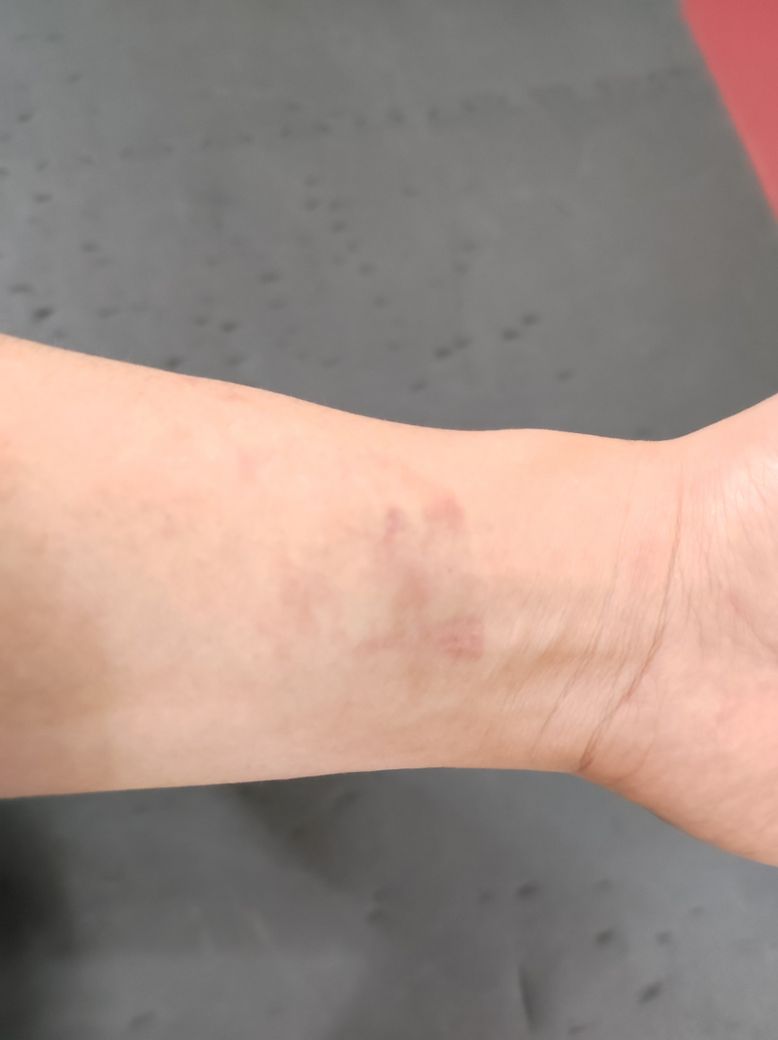 6개월전쯤 일하다가 파이프배관에 긁혔는데 검붉은 흉터가 보기 싫어서요.