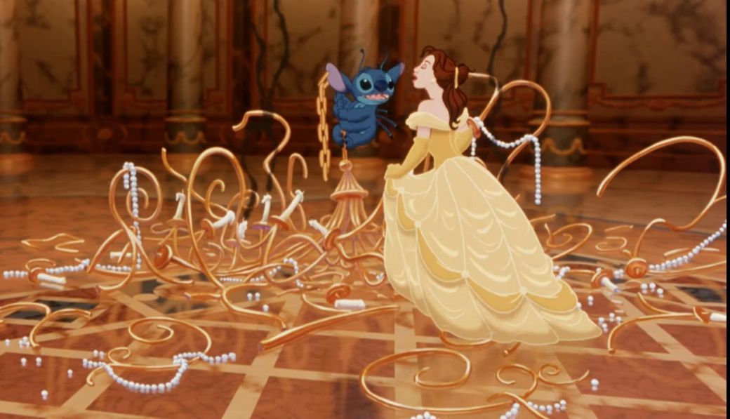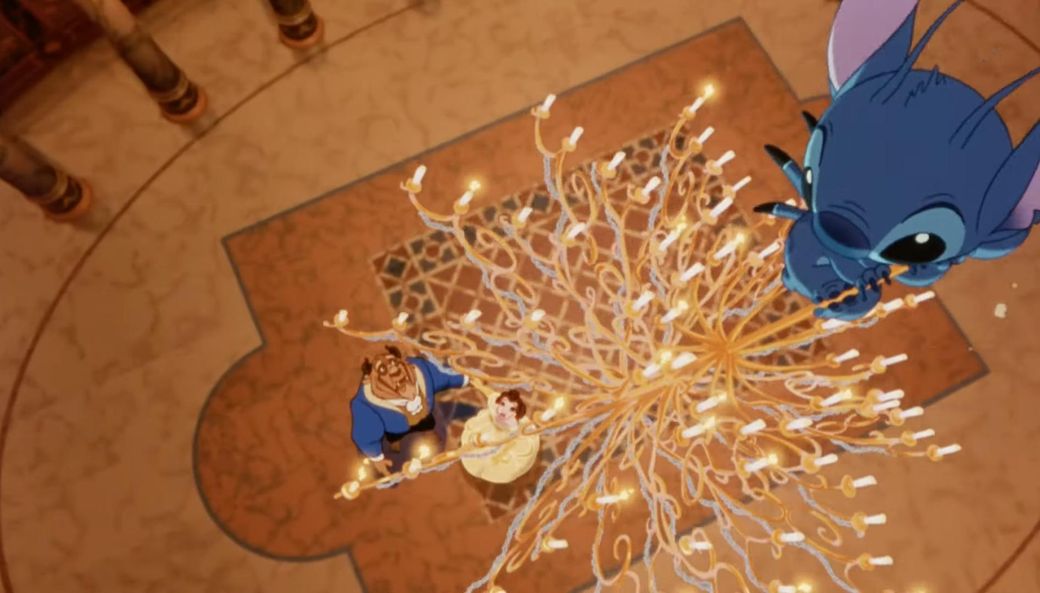 그런데 예고편에 인어공주 애리얼이라든지 미녀와 야수의 벨과 아담, 알라딘과 자스민이 양탄자를 타고 날아갈 때 스티치가 커다란 우주선을 끌고 나왔으며 라이온킹에서 많은 동물들이 보는 바위에 나타나서 카메오가 조금 충격적이었어요.