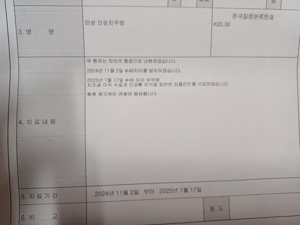 즉, 결론은 치조골 이식술은 2종에 대하는 수술임에 따라 보상을 받을 수 있습니다.