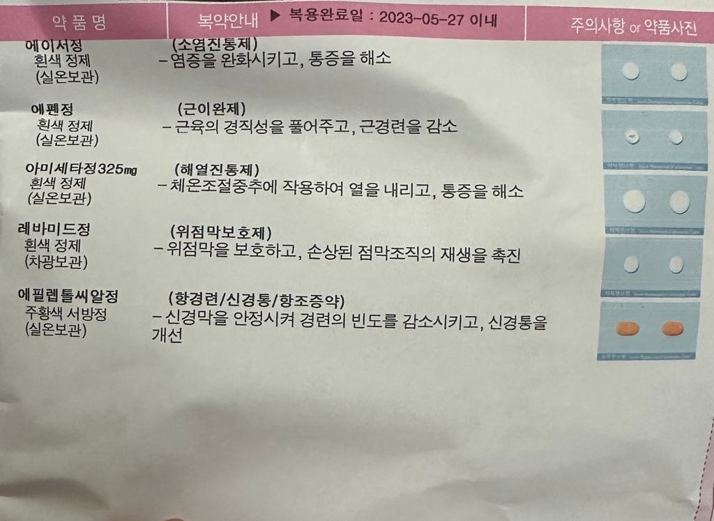 진통제와 위장약이 중복되네요. 산부인과약 안에는 항생제가 포함되어 있어서 꼭 드셔야 될 것 같습니다. 산부인과약 먼저 드시고 다 드시고 난 이후에 정형외과 약을 드시기 바랍니다.