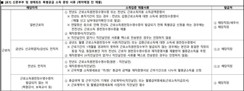 (대부분의 공고가 전년도 소득 증빙을 요구함)