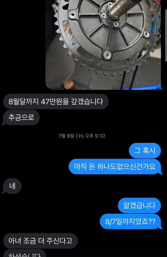 제가 한달전쯤에 자전거 거래를 하였는데 저와 상대방 둘 다 미성년자였습니다. 근데 그 현장에서 미기재하자를 발견하고 추가금액47만원을 달라하였고 그분이 지금은 돈이 없다고 한달뒤에 준다고 하고 메세지로 한달뒤 47을 주겠다 하였습니다. 그리고 추가금액을 받기로한 다음날 갑자기 그분 부모님께서 저한테 전화로 미성년자간에 거래중 추가금액 요구에 대해선 법적으로 보하자가 없앨수있다하는데 어떻게 받을수있는방법이없을까요… 증거는 많이없습니다..