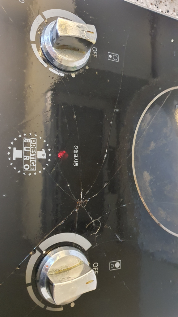 사진에 보이는정도의 손상이고 집주인은 수리비로 인덕션 새거 141790원 세면대새거 30만원 해서 총 441,790원을 사용했습니다