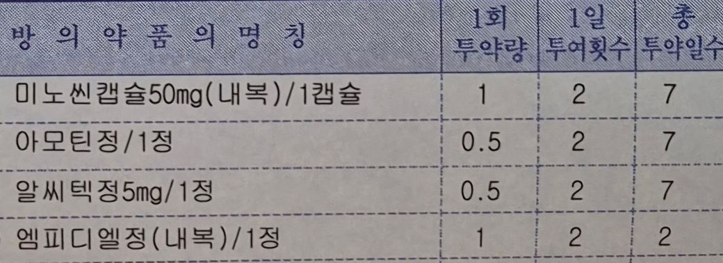 최근 한달 반동안 이소티논(하루 1알)을 복용했습니다. 중간에 피부염이 생겨 더 열심히 챙겨먹었는데 낫지 않아 어제 (사진에 있는)약을 처방받았습니다.