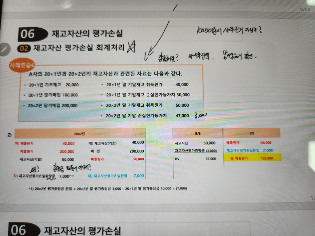 2번 분개) 재고자산평가손실 10000 / 재고자산평가손실충당금 10000
