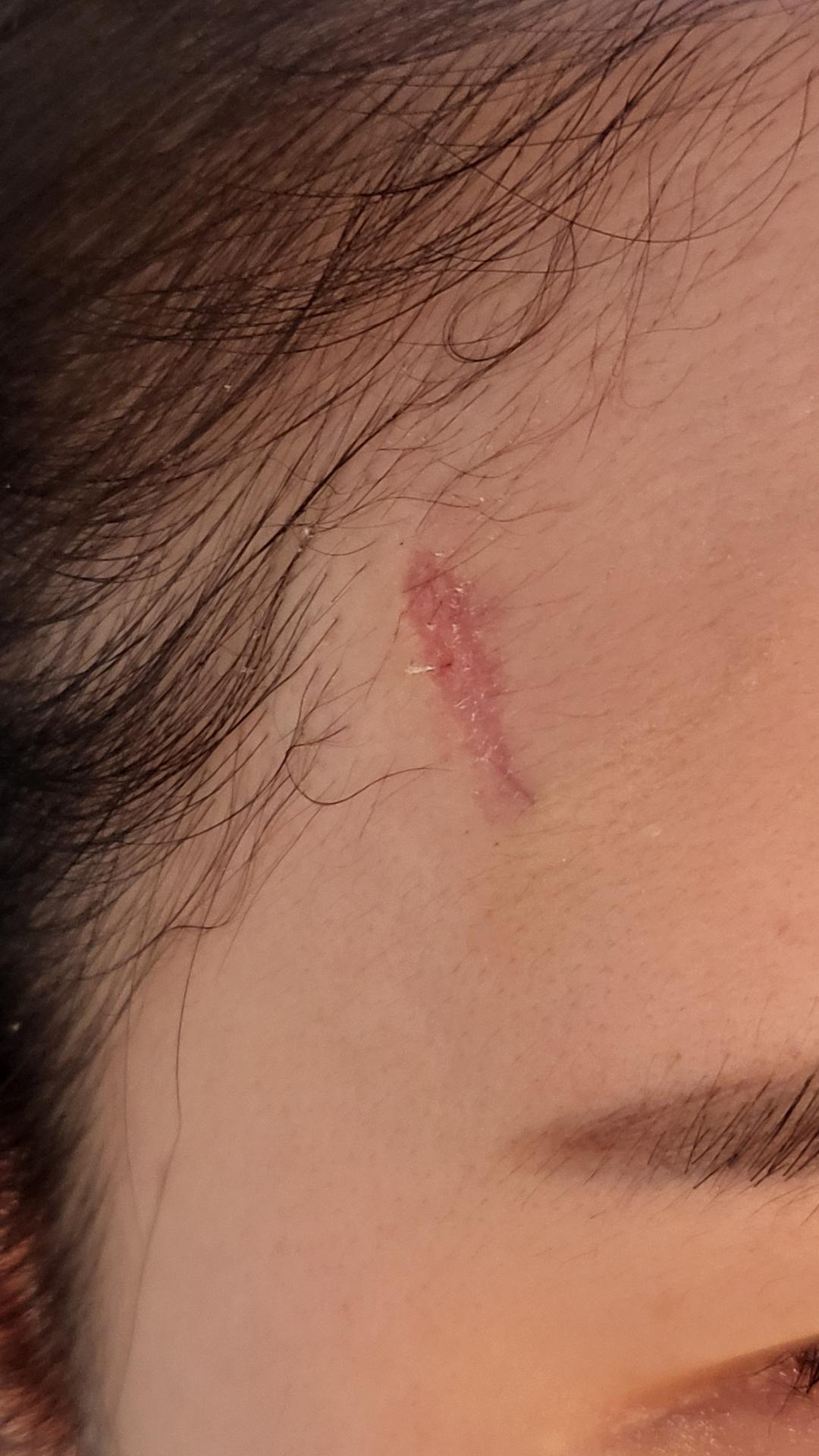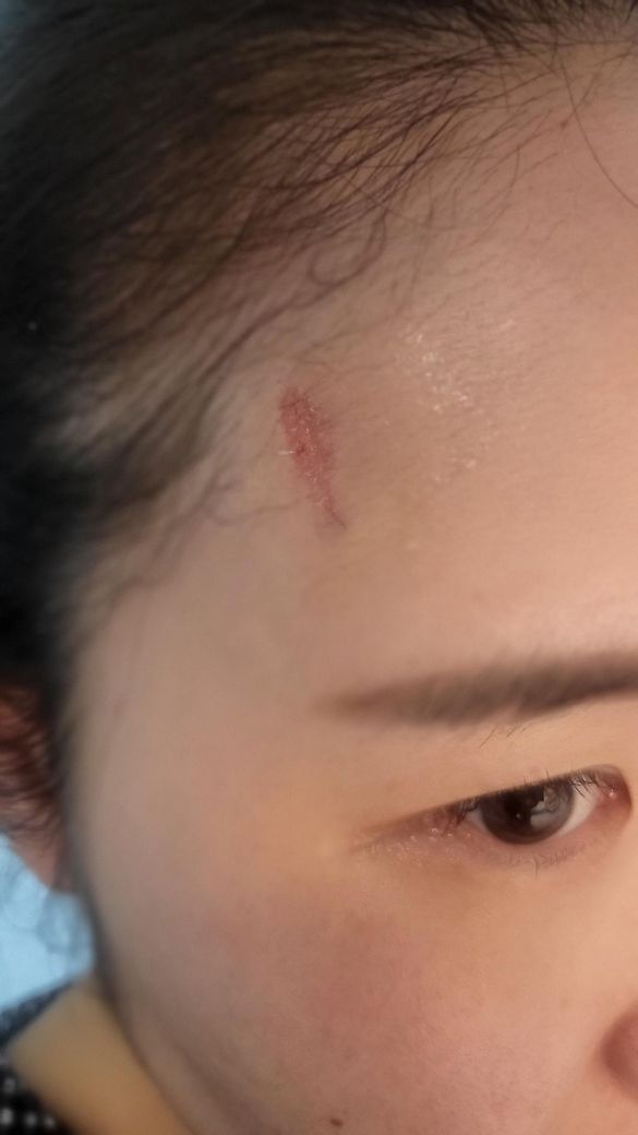 10월 2일 저녁 넘어져서 오른쪽 이마 위에 2센치가량 찢어졌습니다.