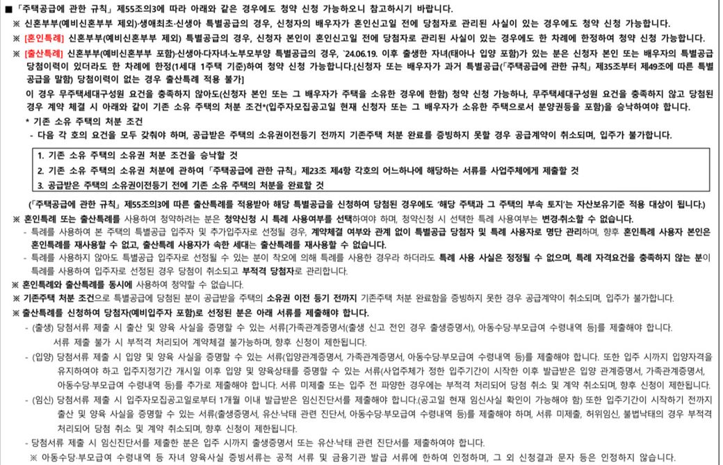 단, 혼인특례의 경우, 공급받는 주택의 소유권이전등기일까지 기존 1주택을 처분한다는 조건으로 청약이 가능한 경우도 있습니다