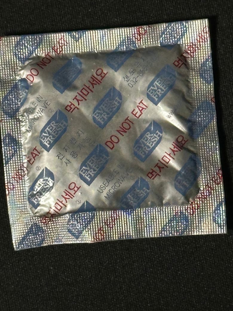 혹시나 해서 선도유지제를 살짝 잘라 내용물을 봤는데 검정과 흰색이 섞여있었습니다