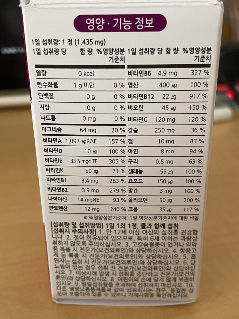 사진에 보여주신 센트룸우먼정에 비타민E 성분이 들어있긴 하지만, 저 정도로는 혈전생성위험성에 특별한 영향을 주지는 않을 것으로 보입니다